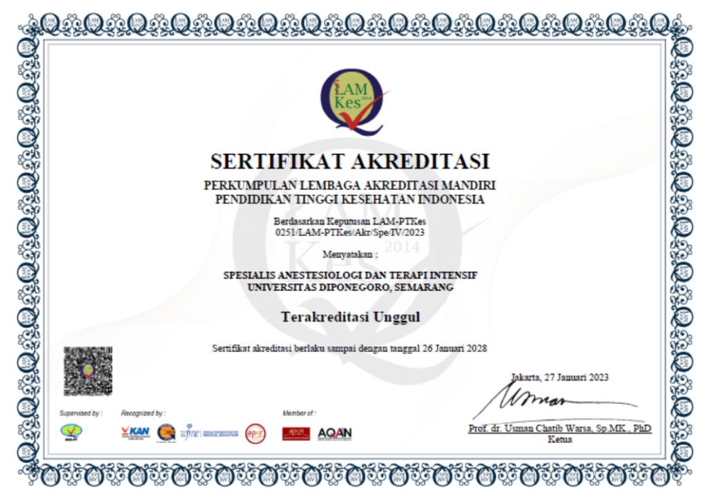 Program Studi Anestesiologi dan Terapi Intensif FK UNDIP Terakreditasi UNGGUL